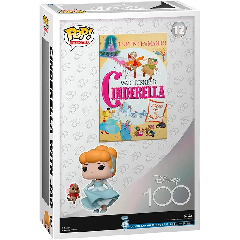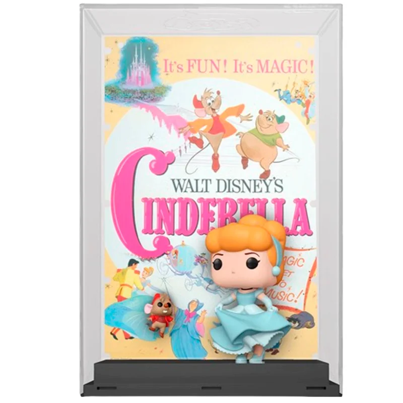 Este Funko número 12 es especial ya que muestra a Cenicienta y Jaq con la portada de la película detrás de ellos y una caja de metacrilato para proteger mucho más las figuras. Además, aquí Cenicienta se muestra con pendientes de perlas, vestido y tacones azules.