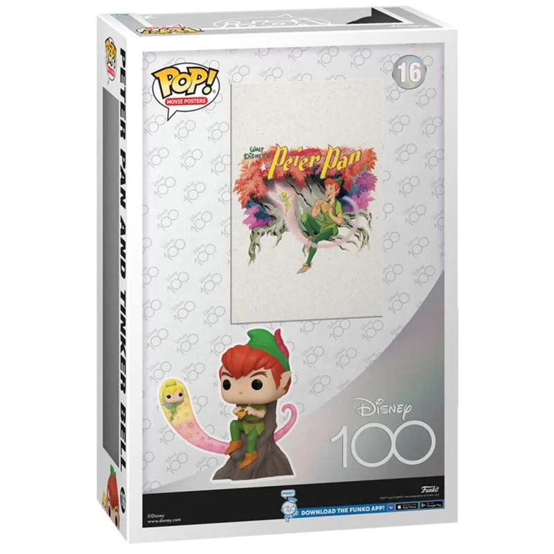 Es Funko número 16 es especial ya que se trata de un clásico de las películas Disney. Además, enseña a Peter Pan y Campanilla junto al cartel de la película inicial.