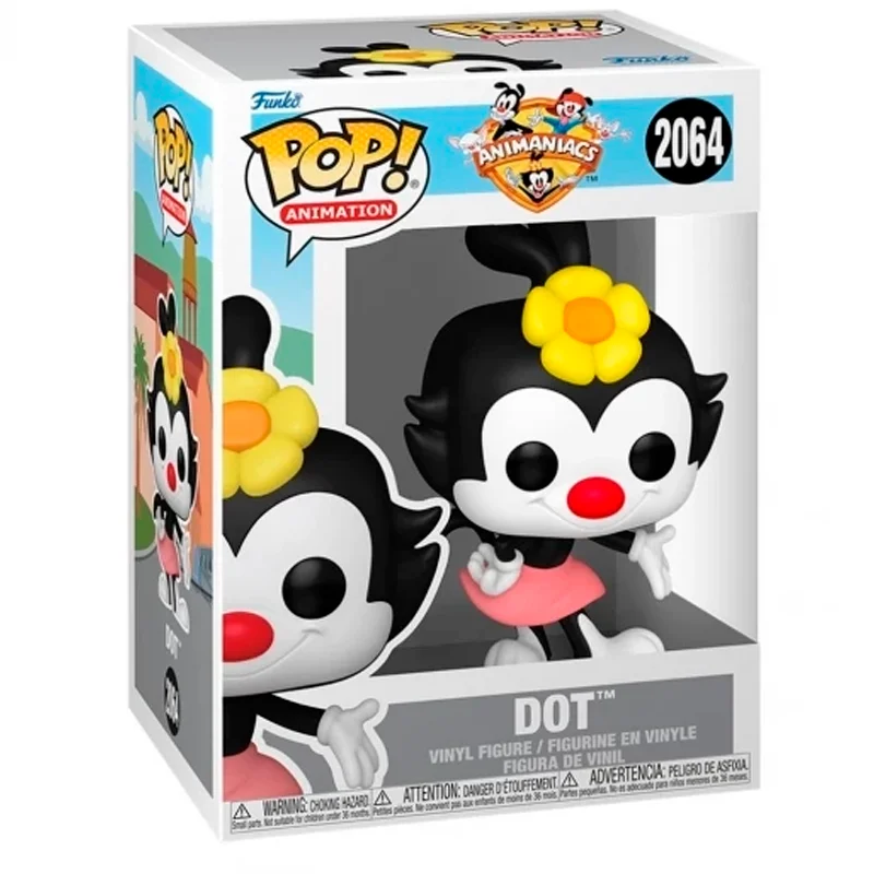 Fabricado en vinilo de alta calidad y presentado en la clásica caja con ventana, este Funko Pop no solo ofrece un diseño cuidado al detalle, sino que también asegura su autenticidad como pieza de colección. Ideal para exhibir en estanterías, vitrinas o como parte del conjunto con Yakko y Wakko, el Funko Pop Dot 2064 es pura nostalgia animada.