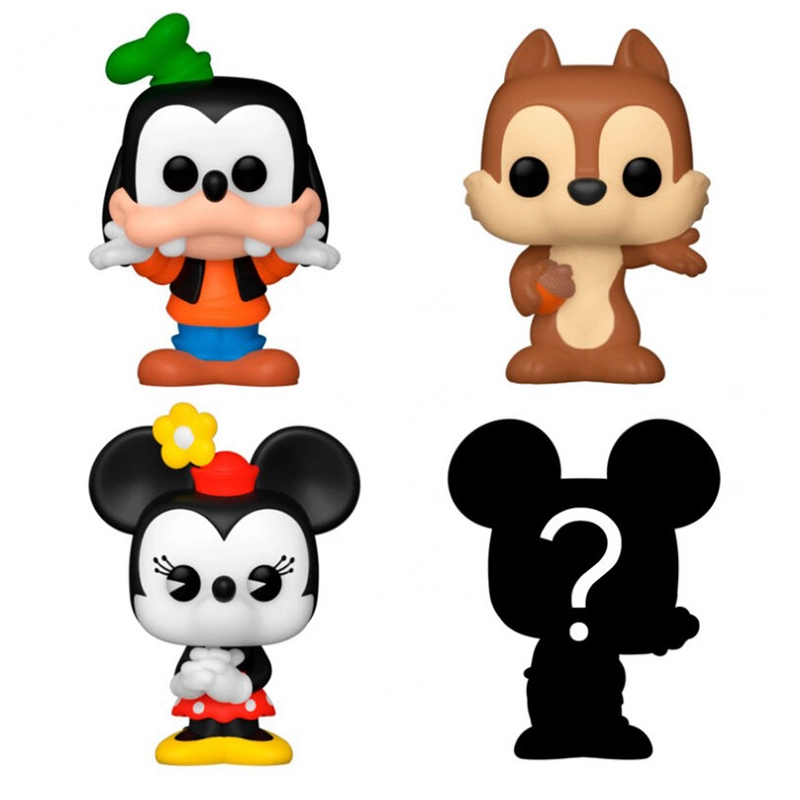 Este Bitty tienen de especial que son adaptaciones de figura Funko Pop en un tamaño de 2.5cm, incluso más pequeños que los keychain o llaveros. No puedes quedarte sin los Bitty Goofy, en tu colección de Disney. Este pack de 4 esta compuesto por Goofy, Chip, Minnie Mouse y ¡sorpresa!