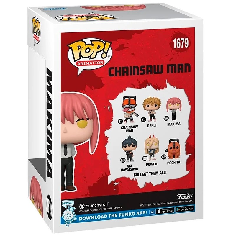 El FUNKO POP Makima 1679 es una pieza de vinilo de gran calidad, fiel a la estética del anime y el manga. Su acabado detallado y su expresión característica hacen de esta figura un artículo único para los seguidores de Chainsaw Man. Además, su presentación en caja original con ventana permite exhibirla sin necesidad de abrirla, manteniéndola en perfectas condiciones.