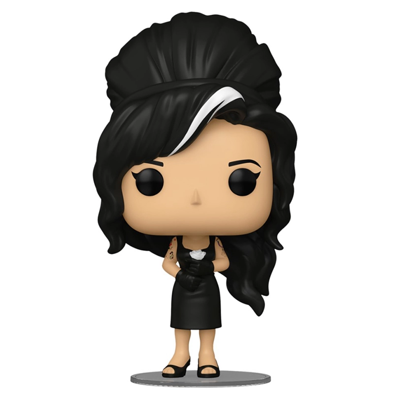 Amy Jade Winehouse más conocida como Amy Winehouse es una cantante y compositora británica. Este Funko de 9cm de tamaño representa a Amy Winehouse con vestido de color negro, sandalias, una flor blanca en el pecho y cabello con un mechón blanco. No te quedes sin tu muñeco cabezón FUNKO POP Amy Winehouse 366.