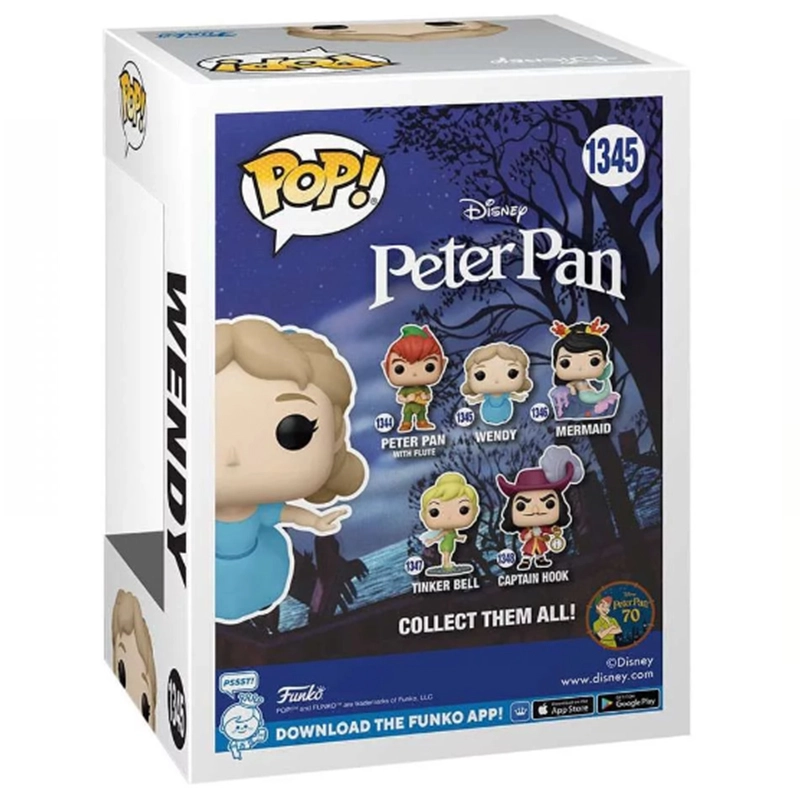 Wendy Darling es la joven que quería evitar entrar al internado, conoce a Peter Pan y Campanilla y los acompaña al mundo mágico de Nunca Jamás. Este Funko de 9cm de tamaño representa a Wendy con vestido azul y cabello recogido, todo este representado sobre una base transparente que simula hacer a la niña volar. No te quedes sin tu figura FUNKO POP Wendy 1345.