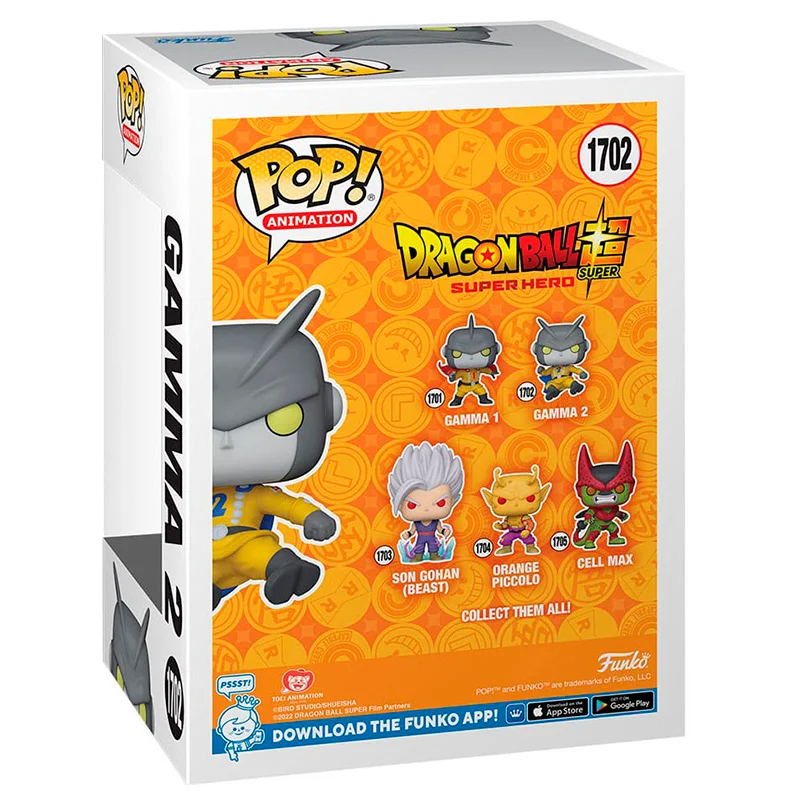 Gamma 2 es un personaje ficticio protagonista de la serie de anime de Dragon Ball Z. Este Funko de 9cm representa a Gamma 2 con traje amarillo, capa azul al aire y saltando. No te quedes sin tu muñeco cabezón FUNKO POP Gamma 2 1702.