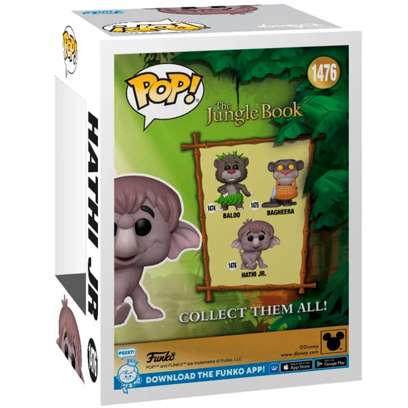 El diseño de este Funko Hathi Jr. 1476 es especial ya que muestra al pequeño elefante caminando, este personaje es hijo del Coronel Hathi y de Winifred. Este personaje apareció al inicio en el libro publicado en 1894 y posteriormente paso a ser una película de la franquicia de Disney.
