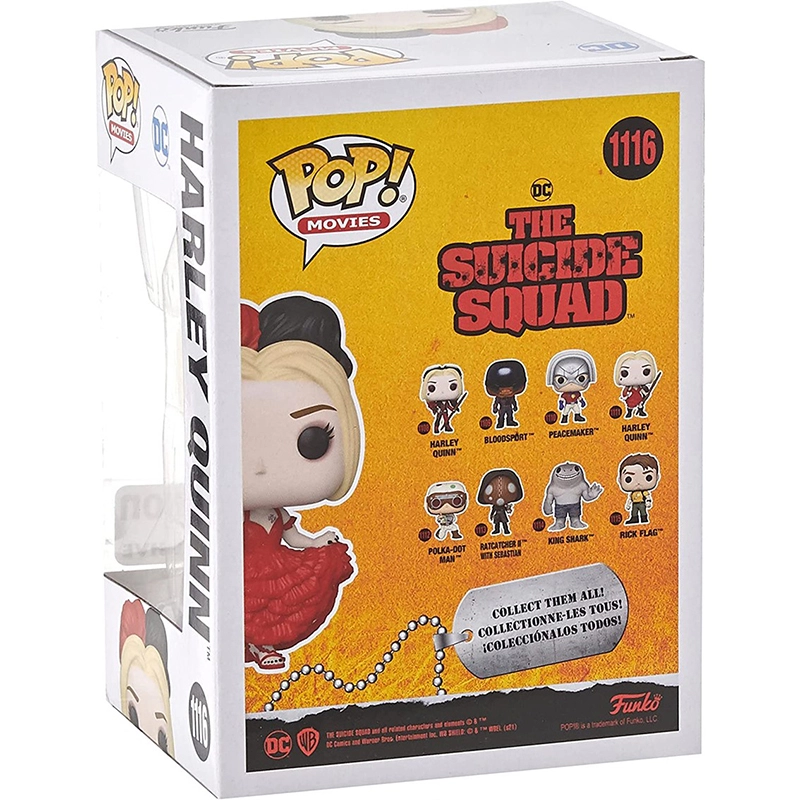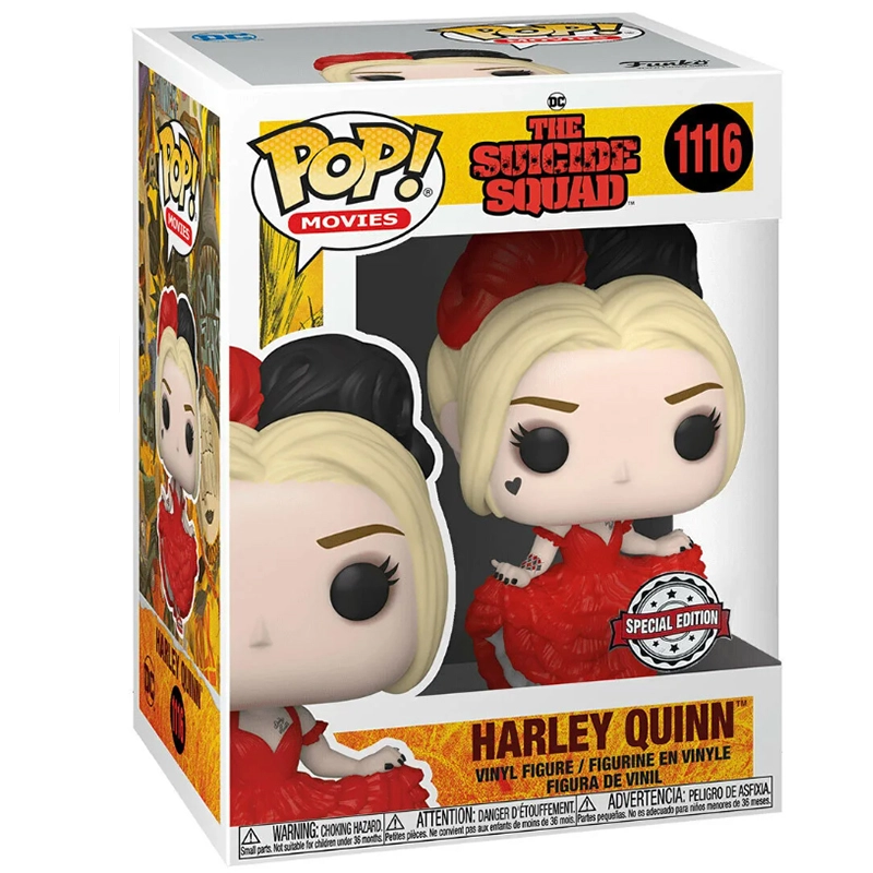 El diseño de este Funko Harley Quinn 1116 es especial ya que muestra al personaje con una vestimenta elegante, con el vestido levantado con las manos. Además, esta figura representa a Harley en una de las escenas de la película “El Escuadrón Suicida”.