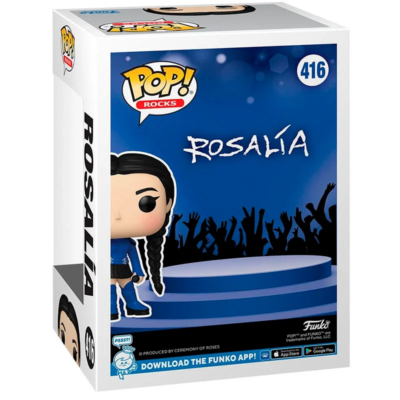 Rosalía Vila Tobella más conocida como Rosalía es un cantante de de las afueras de Barcelona. Este Funko de 9cm de tamaño representa a Rosalía con ropa de color azul y trenzas. No te quedes sin tu muñeco cabezón FUNKO POP Rosalia Motomami 416.