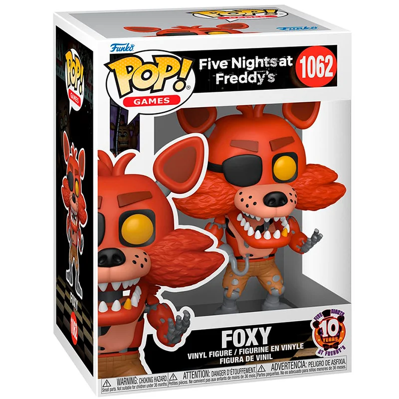El Funko Foxy 1062 se ha diseñado para captar perfectamente la esencia del personaje. Foxy, conocido por su apariencia desgarrada y su actitud de pirata, está representado con todos los detalles que los fans del videojuego reconocerán de inmediato. Su ojo izquierdo cubierto, su garra y su cuerpo deteriorado son algunos de los detalles que hacen que esta figura sea tan especial y aterradora. Aunque mantiene la estética propia de los Funko Pops, no pierde la esencia inquietante de Foxy, lo que la convierte en una pieza única y esencial para los fanáticos del videojuego.