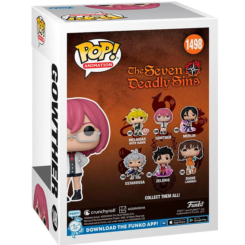 Este Funko 1498 es especial ya que se trata de una edición en la que se muestra a Gowther tal y como aparece en el anime. Este personaje fue creado como una marioneta por un gran mago, que actuaba para el para así poder comunicarse con un antiguo miembro de los Diez Mandamientos.