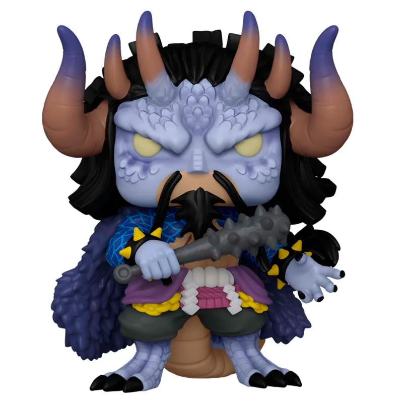 Kaido de las bestias, conocido también como la Criatura más Poderosa. Este Funko de 15 centímetros de tamaño representa a Kaido con mazo de pinchos y dos cuerdos, como las bestias en color lila. No dejes escapar este muñeco cabezón FUNKO POP Bestia Kaido 1624, ideal para ampliar la colección.