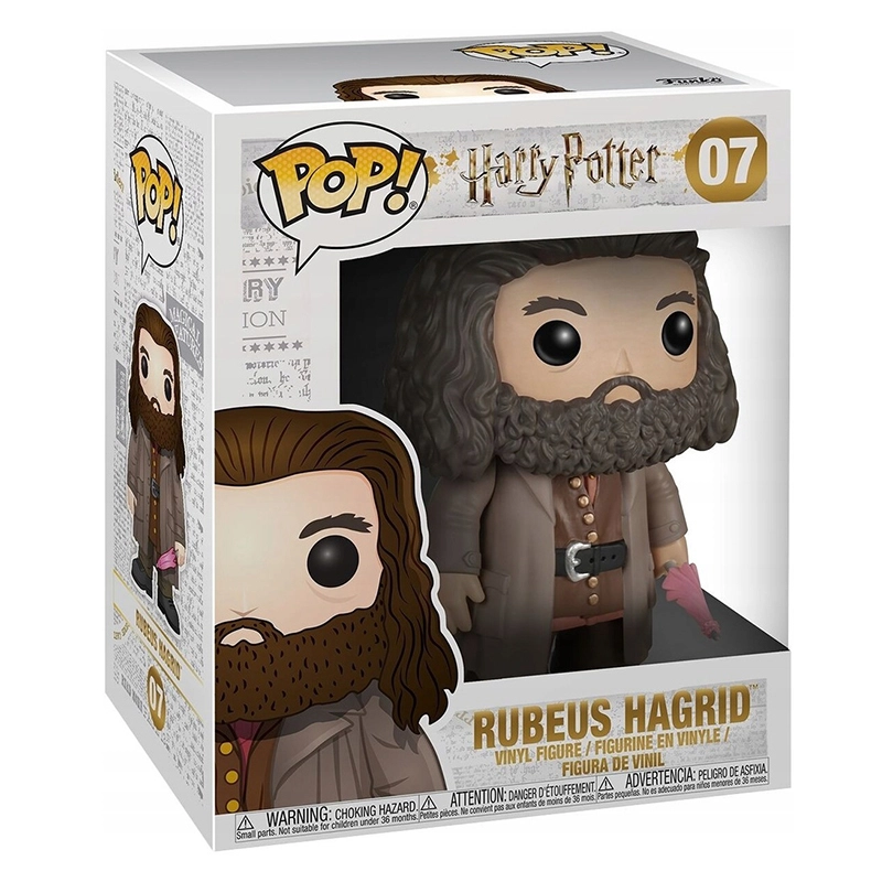 Rubeus Hagrid es un personaje ficticio en los libros de Harry Potter escrita por J. K. Rowling. Hagrid aparece por primera vez en Harry Potter y la piedra filosofal. Este Funko de 15cm de tamaño representa a Hagrid con su vestimenta habitual y un paraguas en una mano. No te quedes sin la figura FUNKO POP Rubeus Hagrid con Paraguas 07.