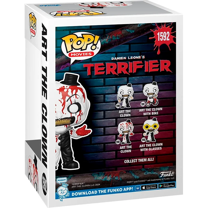 Este Funko número 1592 tienes que tenerlo en tu colección ya que es una figura muy conocida de Halloween y Terrifier, este payaso apareció por primera vez en cortometrajes de bajo presupuesto antes de hacer su debut cinematográfico en la película de antología All Hallows’Eve.