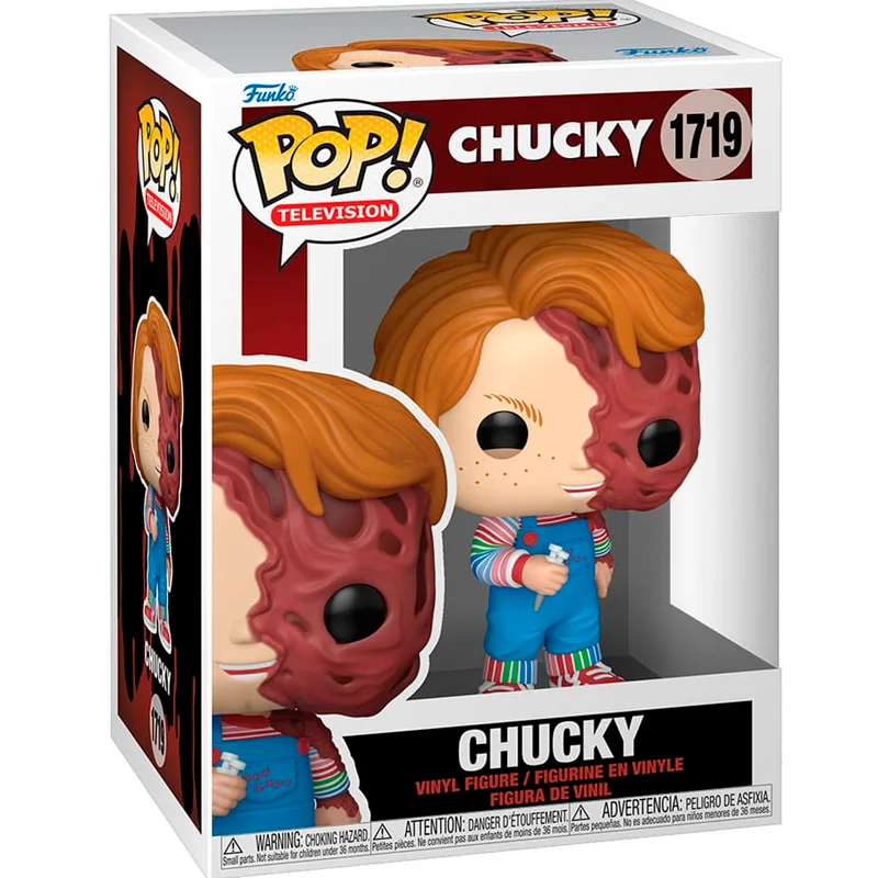 Fabricado en vinilo de alta calidad, el FUNKO POP Chucky 1719 asegura durabilidad y un acabado impecable, ideal para exhibir o coleccionar. Esta figura viene en su caja original con ventana, permitiendo mostrar el muñeco sin necesidad de sacarlo del embalaje, lo que la convierte en una pieza perfecta tanto para exposición como para conservar en perfecto estado.