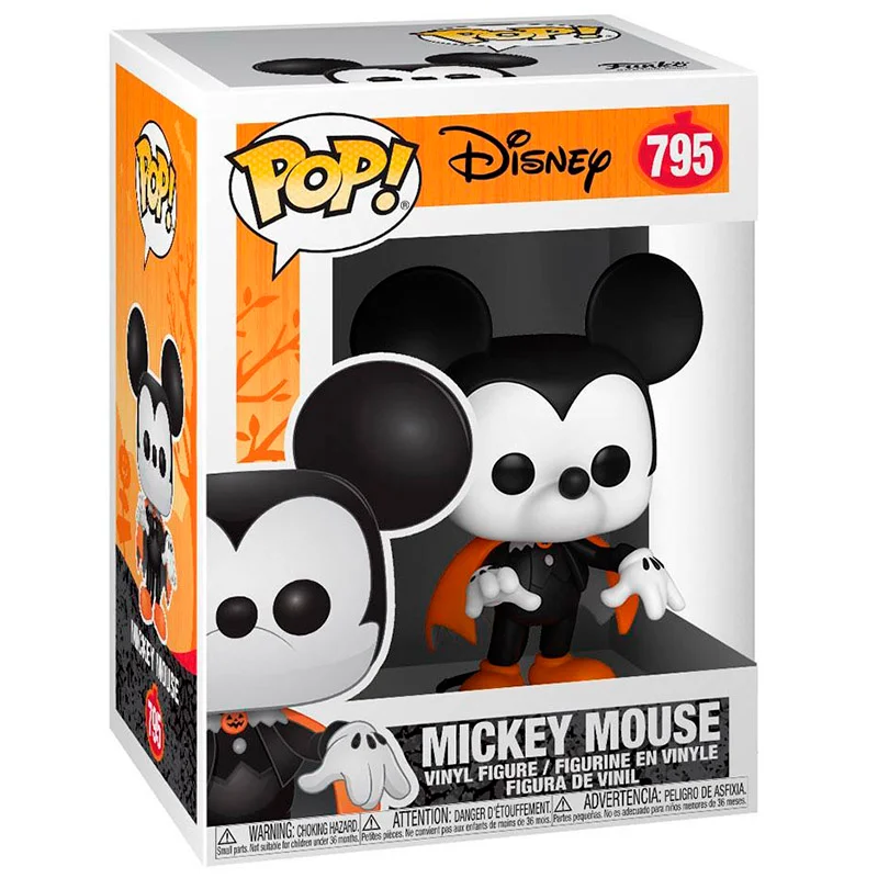 El diseño de este Funko Vampiro Mickey 795 es especial ya que muestra a Mickey con un traje de vampiro en color negro y naranja. Con un pose de susto y un aspecto adorable, siendo un personaje exclusivo de Disney Halloween.