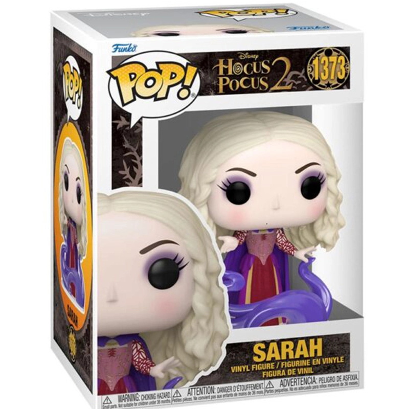 Sarah Sanderson es una de las actrices secundarias de la película Hocus Pocus de Disney, creada en 1993 y con una secuela en 2022. Este Funko de 9cm de tamaño representa a Sarah con vestido de color granate, brazos abiertos, cabello suelto y nube de humo rodeándola. No te quedes sin tu figura FUNKO POP Sarah 1373.