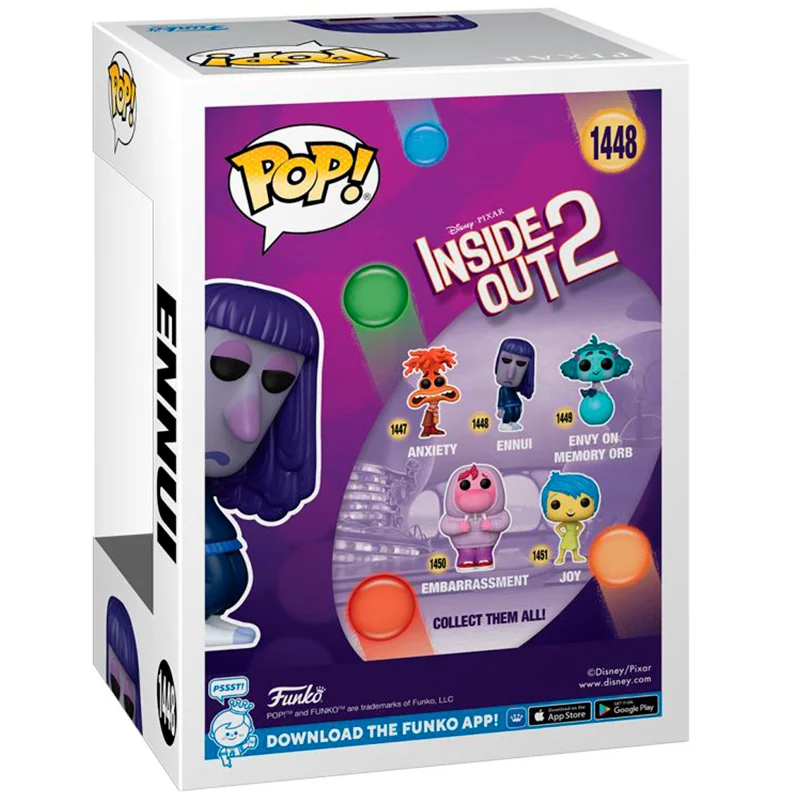 Aburrimiento es una de las emociones de Inside Out 2. Este Funko de 9cm de tamaño representa a Aburrimiento, totalmente apagada y en colores oscuros como lila. No dejes escapar la figura FUNKO POP Aburrimiento 1448.