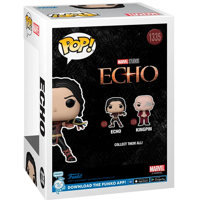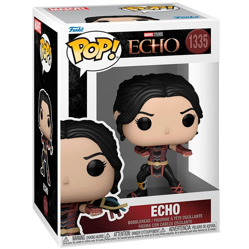 Echo es un personaje ficticio creado por la franquicia de Marvel Comics. Este Funko de 9cm de tamaño representa a Echo con su vestimenta habitual en postura de lucha, lista para defenderse de sus oponentes. No te quedes sin tu muñeco cabezón FUNKO POP Echo 1335.