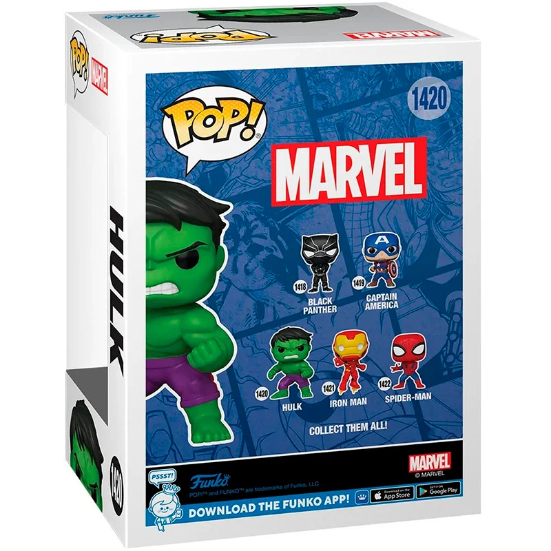 Hulk es un personaje ficticio creado por Marvel comics, donde aparece principalmente en Los Vengadores. Este Funko de 9 centímetros de tamaño nos muestra a un Hulk en color verde y un poco enfadado. No puedes dejar escapar el muñeco FUNKO POP Hulk 1420.