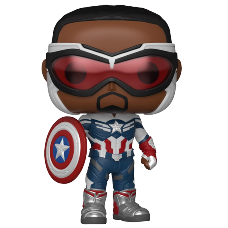 Este Funko número 814 es especial ya que se trata de Falcon con el traje de Capitán América, el cual se muestra enfadado y listo para luchar contra su oponente gracias a su escudo.