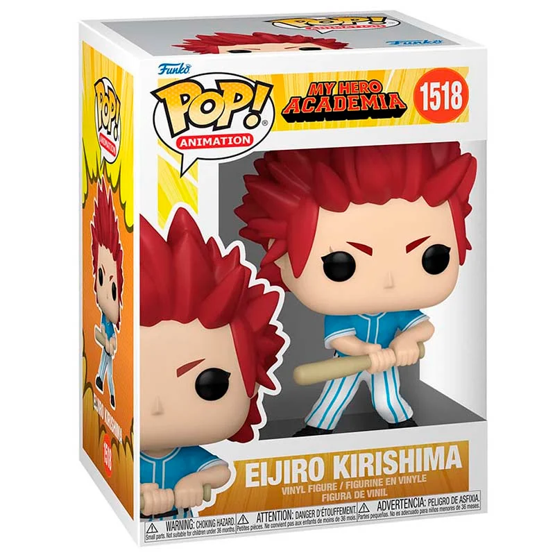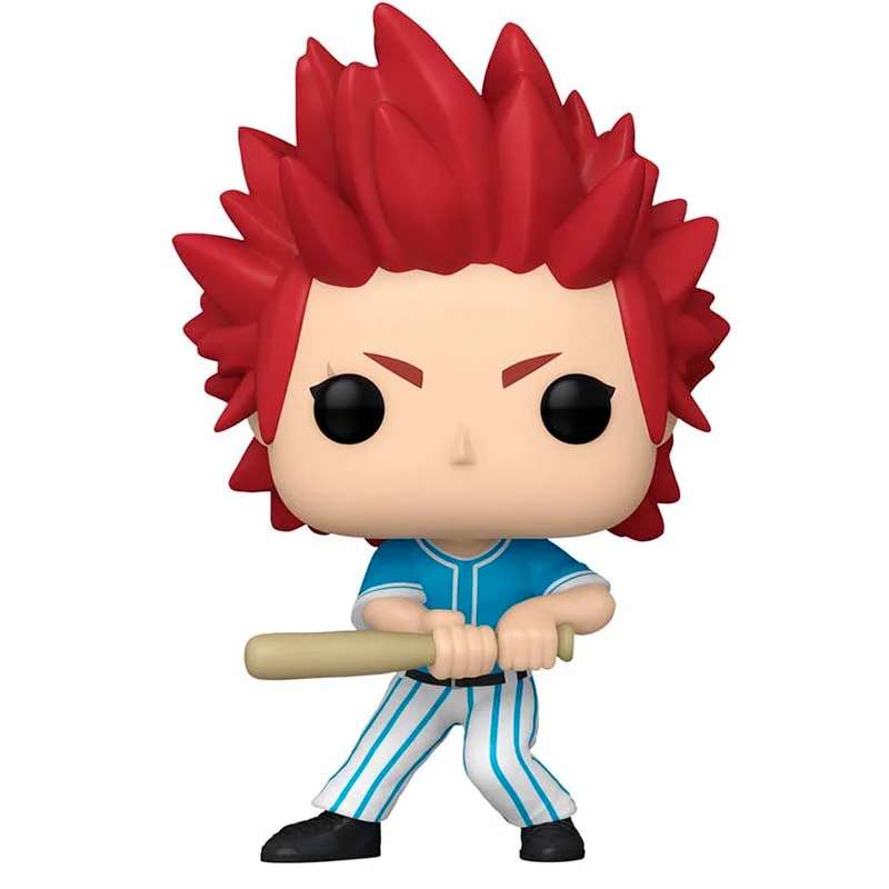 Eljiro Karisima también conocido como héroe resistente Red Riot. Este Funko de número de 9cm de tamaño representa a Eljiro con los pelos rojos de pincho, camiseta azul, pantalón a rayas y bate de beisbol. No te quedes sin tu muñeco FUNKO POP Eljiro Kirishima 1518.