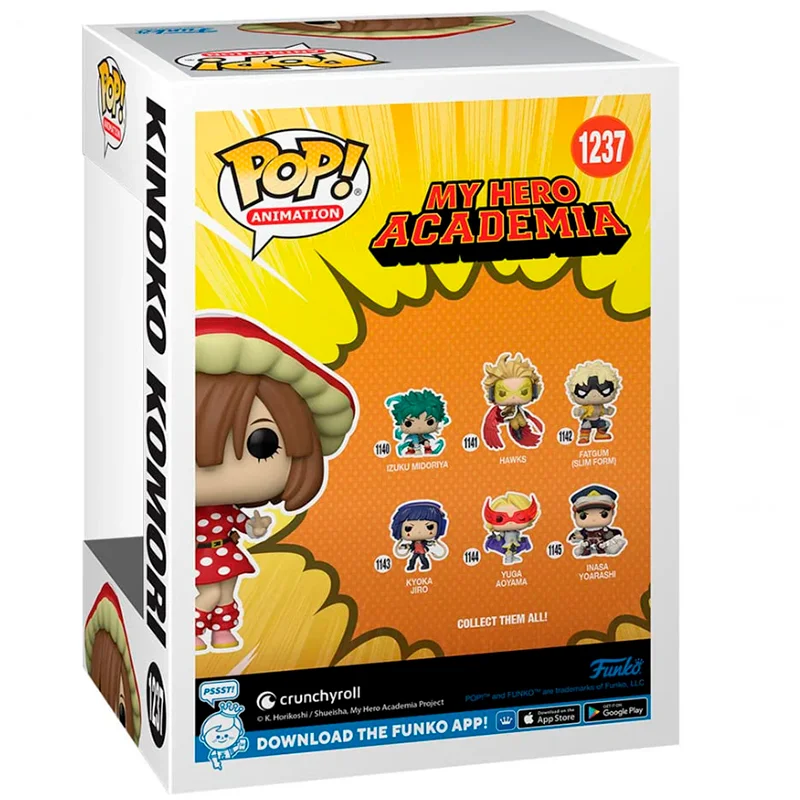 La figura FUNKO POP Kinoko Komori 1237 es una verdadera joya para los seguidores de My Hero Academia. Con su característico uniforme escolar y su peculiar habilidad relacionada con los hongos, esta figura encapsula perfectamente la esencia de un personaje tan entrañable como original. Con un diseño detallado y fiel al anime, este Funko Pop de My Hero Academia es ideal tanto para nuevos fans como para coleccionistas veteranos que buscan ampliar su repertorio con personajes poco comunes.