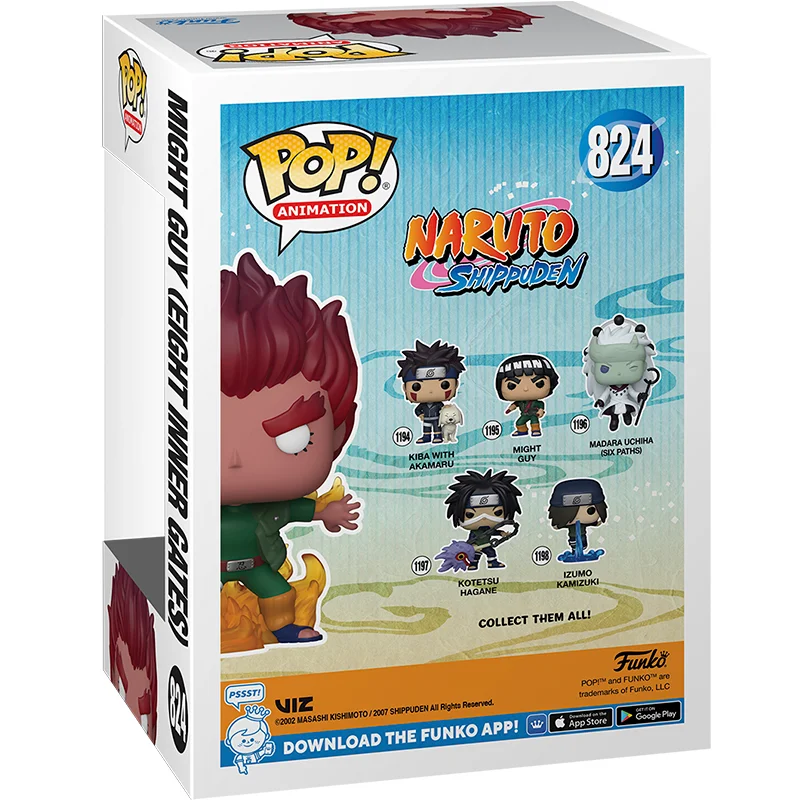 Might Guy es un Chunin de Konohagakure que creado para la serie de anime de Naruto. Este Funko de 9cm de tamaño representa al personaje Might Guy con mono verde, calcetines amarillos, sandalias, manos estiradas con fuego detrás y la cara color rojo. No te quedes sin tu muñeco cabezón FUNKO POP Might Guy 824.