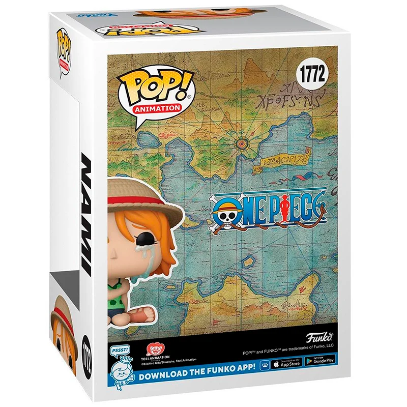 Nami más conocida como Onami, apodada “Gata Ladrona”. Este Funko de 9cm de tamaño representa a Nami sentada en el suelo, llorando con un sombrero de paja. No dejes escapar este muñeco FUNKO POP Nami 1772.