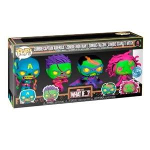 Pack 4 FUNKO POP Capitán Zombie, Iron Man Zombie, Falcon Zmbie y Bruja Escarlata Zombie – What if.. Edición Especial