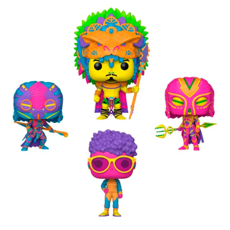 Pack Funko Rey Namor, Shuri, Okeye y Aneka de Wakanda Forever en edición especial brillante en la oscuridad