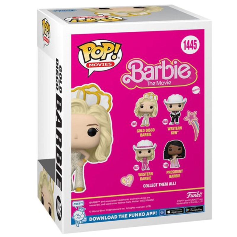 Barbie es una muñeca creada en 1959 que posteriormente hacen una película sobre ella. Este Funko de 9cm de tamaño representa a Barbie con vestimenta dorada y corona lista para bailar en la disco. No te quedes sin tu muñeco FUNKO POP Barbie 1445.