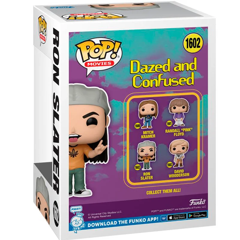 Ron Slater es uno de los personajes principales de la película de Aturdido y Confuso. Este Funko de 9cm de tamaño representa a Ron con su vestimenta habitual y sacando la lengua con los dedos de las manos en forma de cuernos. No te quedes sin tu muñeco cabezón FUNKO POP Ron Slater 1602.