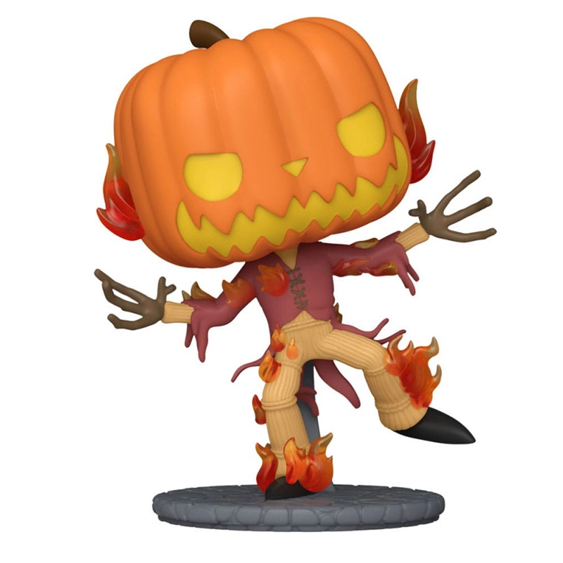 El diseño de este Funko 1357 es especial ya que muestra al personaje protagonista de la película “Pesadilla Antes de Navidad”, con vestimenta de espantapájaros quemándose atado a un palo.