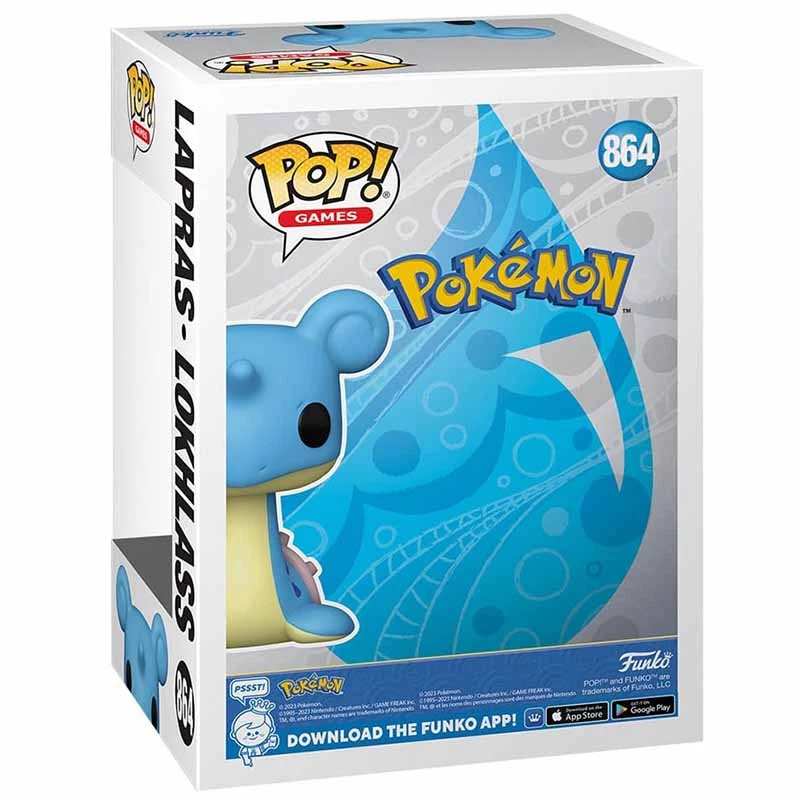 El Funko 864 es especial ya que se trata de un Pokémon de primera generación, es decir, de los primeros en aparecer en la serie de televisión. Además, muestra a Lapras con su caparazón y cuerno en la frente.
