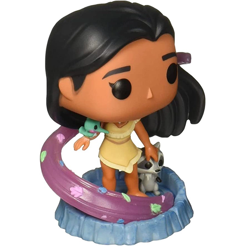 El diseño de este Funko Pocahontas 1017 es especial ya que muestra a la joven princesa con un traje artesano, con una pose agradable, acompañada de su mascota Meeko y de un pájaro en su brazo derecho y rodeada de un aura mística en la zona del bosque mágico. Además, representa una escena de una de las princesas más icónicas del mundo Disney.