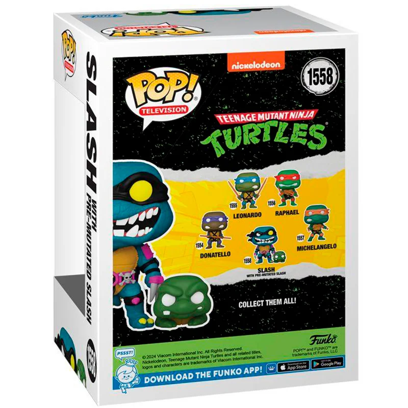 El diseño de este Funko Slash con Premutado 1558 es especial ya que muestra a una de las mascotas de Las Tortugas Ninja, en concreto de Raphael. Además, este funko representa a Slash una vez ha completado su mutación.