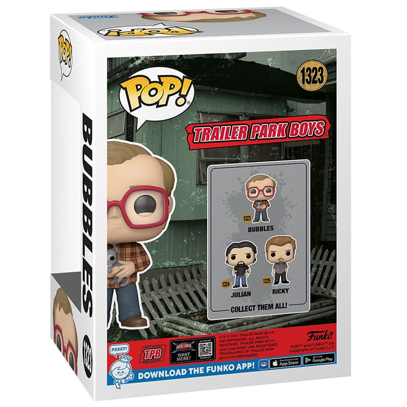 Bubbles es un personaje ficticio creado para la serie de televisión de Trailer Park Boys. El personaje es interpretado por el actor Mike Smith. Este Funko de 9cm de tamaño representa a Bubbles con gafas de ver grandes de color rojo, camisa a cuadros, pantalón vaquero y un gato gris en las manos. No dejes escapar la figura FUNKO POP Bubbles 1323.