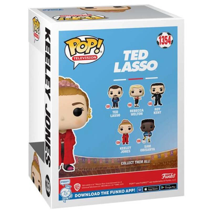 Keeley Jones es un personaje principal que aparece en la serie de Apple+ de Ted Lasso. Este Funko de 9cm de tamaño representa a Keeley Jones con vaqueros, camiseta corta, gabardina roja y cabello recogido en un moño. No te quedes sin tu muñeco cabezón FUNKO POP Keeley Jones 1354.
