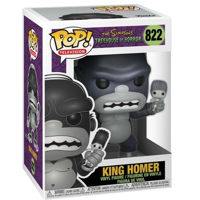 Homer Jay Simpson más conocido como Homer Simpson. Este Funko de 9 centímetros de tamaño representa a Homer como si fuera King Kong con una mini Marge en una mano y cara de enfadado. No te quedes sin tu figura FUNKO POP Rey Homer 822.