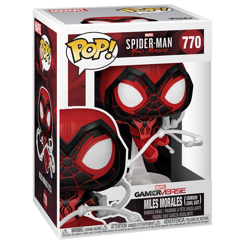 Miles Morales es el personaje principal del videojuego de Spider-Man creado por la franquicia de Marvel. Este Funko de 9cm de tamaño representa a Miles con traje rojo con rayas como tela raña negras en la cara y una cuerda blanca con nudos al rededor de su cuerpo, todo esto sobre una base transparente que simula estar saltando. No dejes escapar la figura FUNKO POP Miles Morales 770.