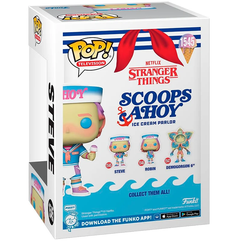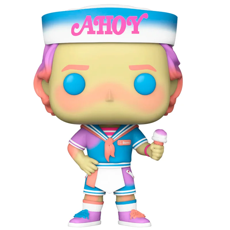 Steve Harrington más conocido como Steve es un personaje ficticio de la serie original de Netflix. Este Funko de 9cm de tamaño representa a Steve con traje de marinero en colores rosas y azules, un gorrito que pone «Ahoy» y un helado en la mano. No te quedes sin el muñeco cabezón FUNKO POP Steve 1545.