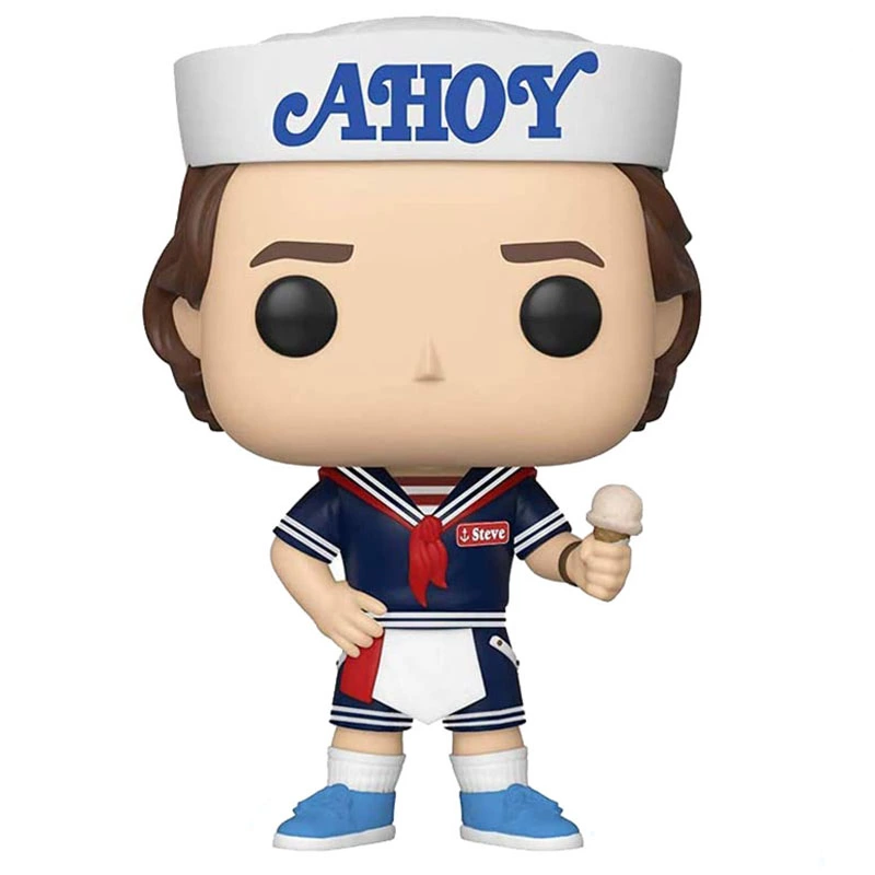 Steve Harrington más conocido como Steve es un personaje ficticio de la serie original de Netflix. Este Funko de 9cm de tamaño representa a Steve con traje de marinero, un gorrito que pone «Ahoy» y un helado en la mano. No te quedes sin el muñeco cabezón FUNKO POP Steve 803.