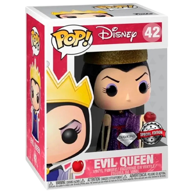 El diseño del Funko 42 es especial ya que se trata de la Reina Malvada en su mejor aparición. Además, en este caso la figura nos muestra a una reina con una manzana en la mano y en edición especial diamond o brillante.