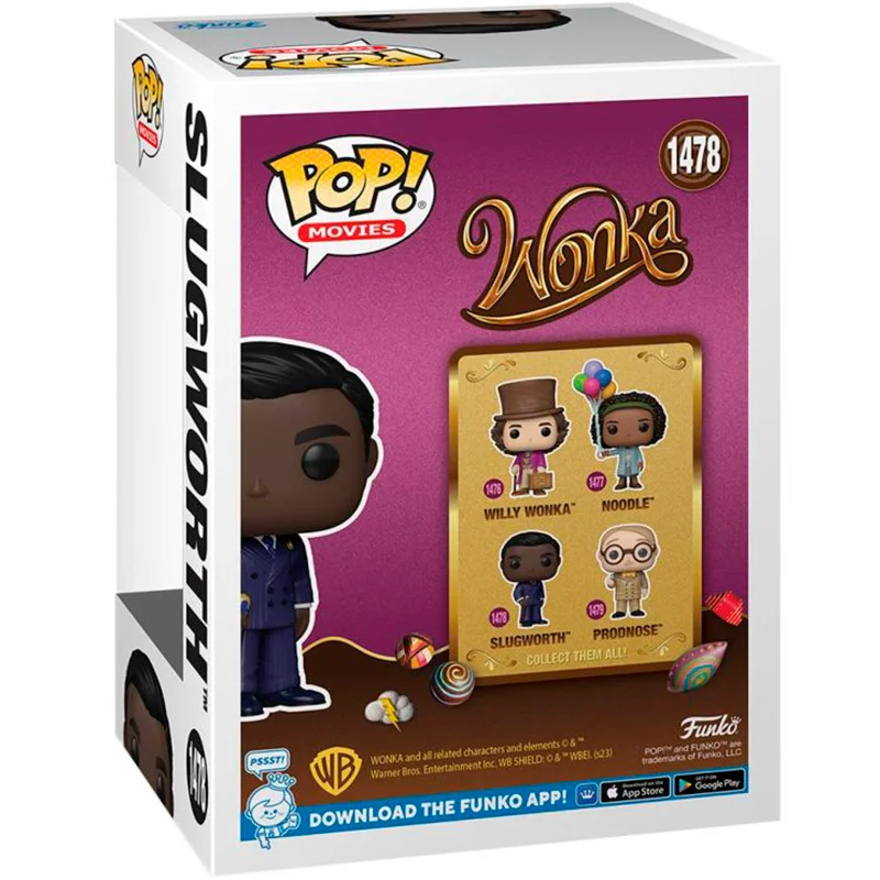 S. Arthur Slugworth más conocido como Slugworth es un personaje de Charlie y la Fabrica de Chocolate y de la nueva película de Wonka. Este Funko de 9cm de tamaño representa a Slugworth con bastón y traje de color azul brillante. No te quedes sin tu muñeco cabezón FUNKO POP Slugworth 1478.