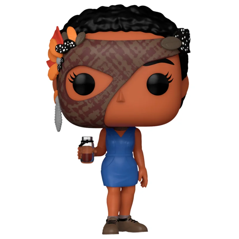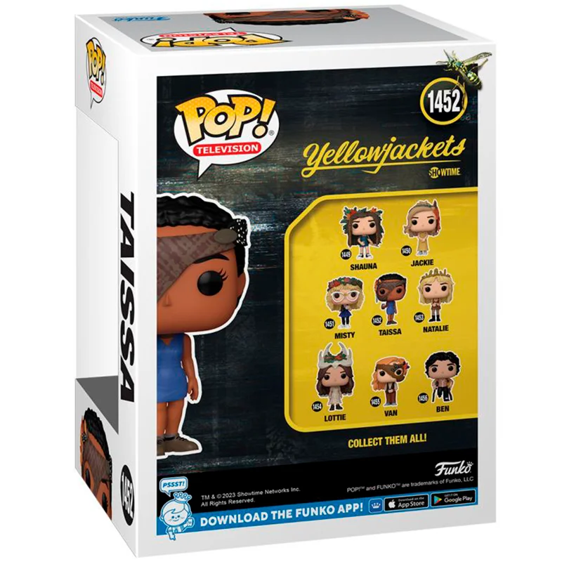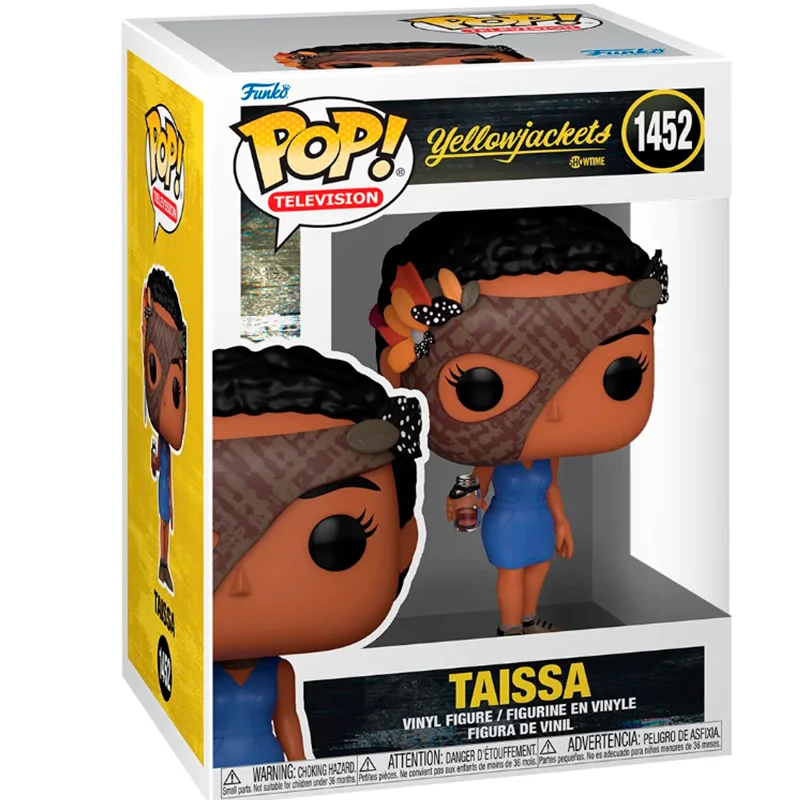 Taissa Turner más conocida como Taissa es un personaje ficticio de la serie original Yellowjackets, de Showtime. Este Funko de 9cm de tamaño representa a Taissa con vestido de color azul, zapatos, un bote en una mano y media cara tapada con una especie de tela con hojas. No te quedes sin el muñeco cabezón FUNKO POP Taissa 1452.